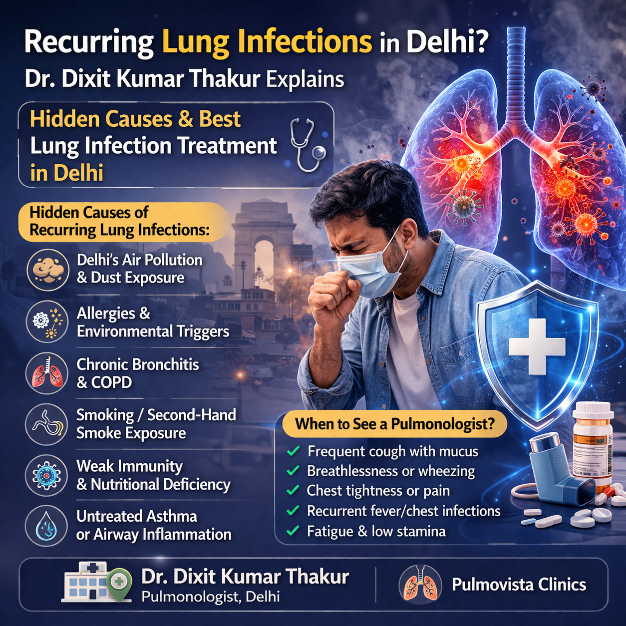 Patients can consult Dr. Dixit Kumar Thakur at Pulmovista Clinics for specialist lung infection management.