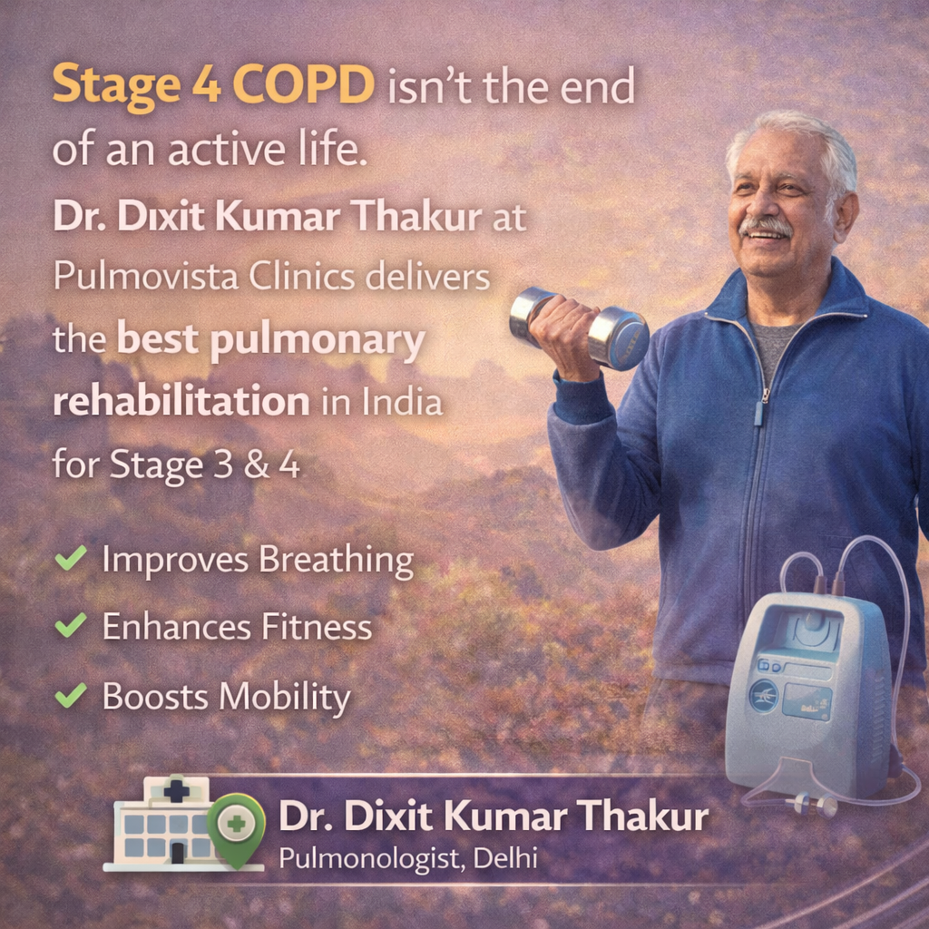 Under expert supervision at Pulmovista Clinics, patients receive evidence-based treatment from Dr. Dixit Kumar Thakur, ensuring early intervention, safer recovery, and long-term lung protection.